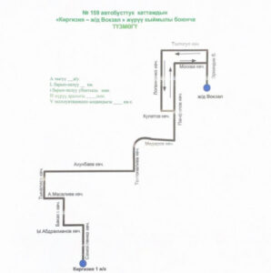 Маалым болгондой, №159 маршрут «Киргизия-1» конушунан темир жол бекетине чейин бекитилген маршруттук планга ылайык жүрөт.