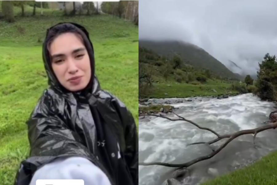 Анда туристтин «Мен азыр сиздерге эч кандай фильтр жана эффектиси жок жайды көрсөтөм. Караңыздарчы, мынчалык кооз жер, бул Швейцариябы? Суу, тоо, булуттарды караңыз», — деп жатканын көрүүгө болот.