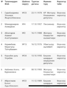 Борбордук шайлоо комиссиясына 7 жарандан мөөнөтүнөн мурда Жогорку Кеңештин депутаттыгына талапкер катары (өзүн-өзү көрсөтүү тартибинде) катышуу жөнүндө арыз түштү. Бул тууралуу БШКнын басма сөз кызматы билдирди.