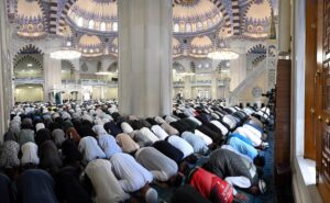 Мамлекет башчысы майрамдык айт намазды мечитке келгендер менен бирге окуду.
